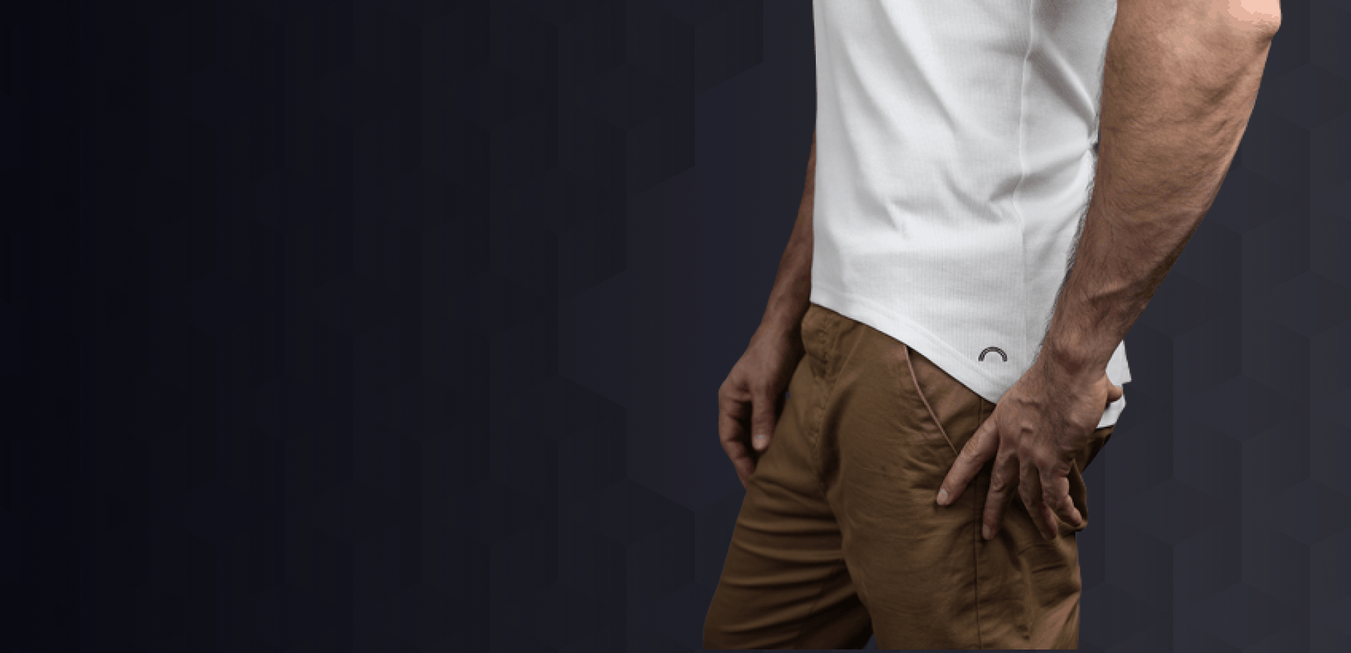 Looking for a man's undershirt that's comfortable and stylish? Look no further than our undershirt with a unique half circle design on the front bottom of the shirt. Not only does this design provide a modern touch to your everyday look, it's an original undershirt that has a functional design. Now you can "GO" with ease.